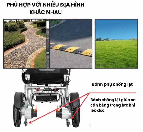 💡 Mẹo nhỏ: Nên chọn xe có bánh sau lớn và hệ thống giảm xóc tốt, giúp xe vận hành êm ái ngay cả khi đi trên nền gạch hoặc đường gồ ghề.