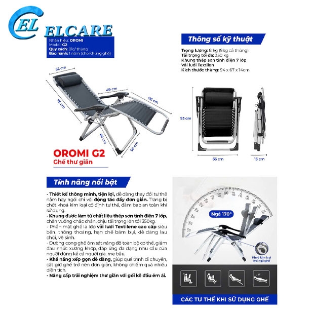 - Ghế xếp thư giãn cao cấp OROMI G2 là sự kết hợp hoàn hảo xóa đi ranh giới giữa ngồi và nằm. Sản phẩm đem đến sự tiện lợi cho người tiêu dùng với tính ứng dụng đa năng và nhiều lợi ích sức khỏe. Với nhiều cải tiến về kỹ thuật cũng như chất liệu, ghế xếp thư giãn OROMI được lòng hàng triệu người tiêu dùng bởi những điều đặc biệt trong thiết kế và những trải nghiệm chỉ có ở OROMI.