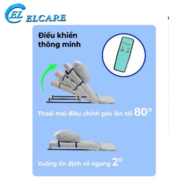 Tấm tựa lưng cao cấp có tay điều khiển giúp người dùng nâng lưng lên, hạ lưng xuống dễ dàng. Điều khiển từ xa cầm tay, thiết kế tiện lợi mang lại sự trợ giúp tốt nhất cho bệnh nhân. Tựa lưng giường nâng điện thông qua điều khiển. Cho phép người dùng dễ dàng điều chỉnh vị trí của giường chỉ bằng một nút nhấn, tạm dừng góc chọn tùy ý, dễ dàng điều chỉnh góc thoải mái. Tấm tựa lưng có kích thước tương đương mặt đệm đơn (190cm x 75cm). Bạn có thể đặt tấm tựa lưng có điều khiển điện ngay vào giường của người bệnh, người già yếu và sử dụng luôn.
