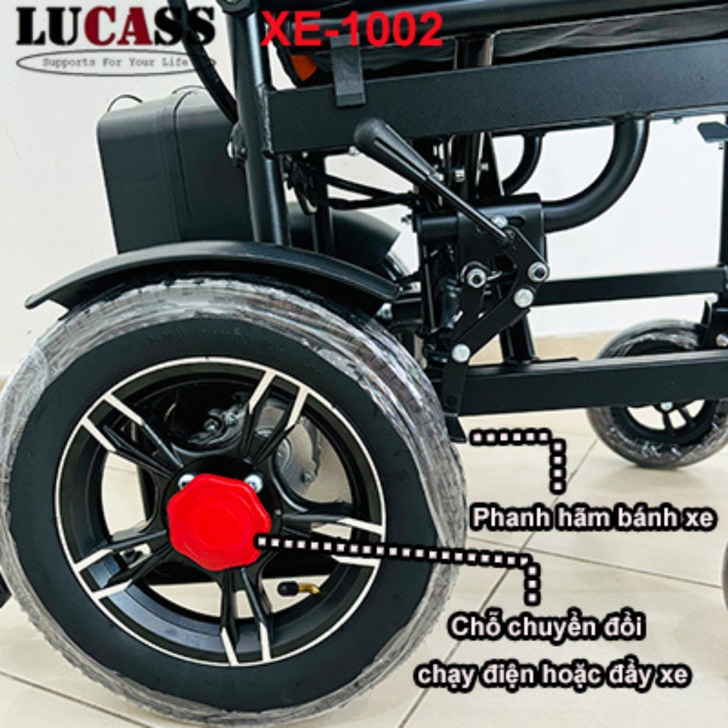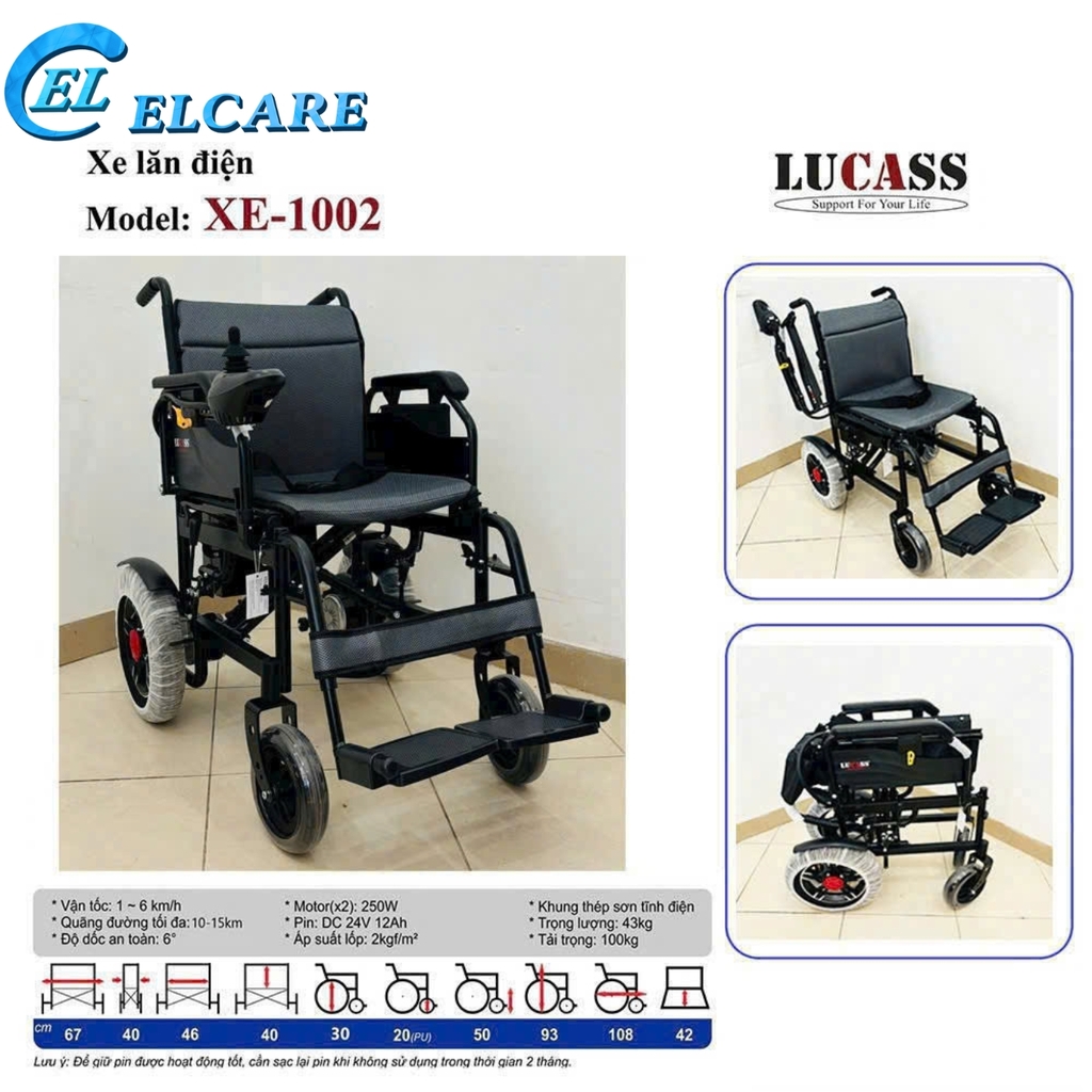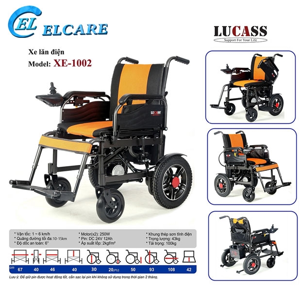 Xe lăn điện Lucass XE-1002 đến từ thương hiệu của Mỹ, tích hợp bình ắc quy sẽ hỗ trợ người già người bị tai biến thuận tiện trong công việc di chuyển hàng ngày. Xe lăn điện di chuyển vận hành êm ái, điều khiển dễ dàng giúp người dùng vận hành di chuyển xe linh hoạt.