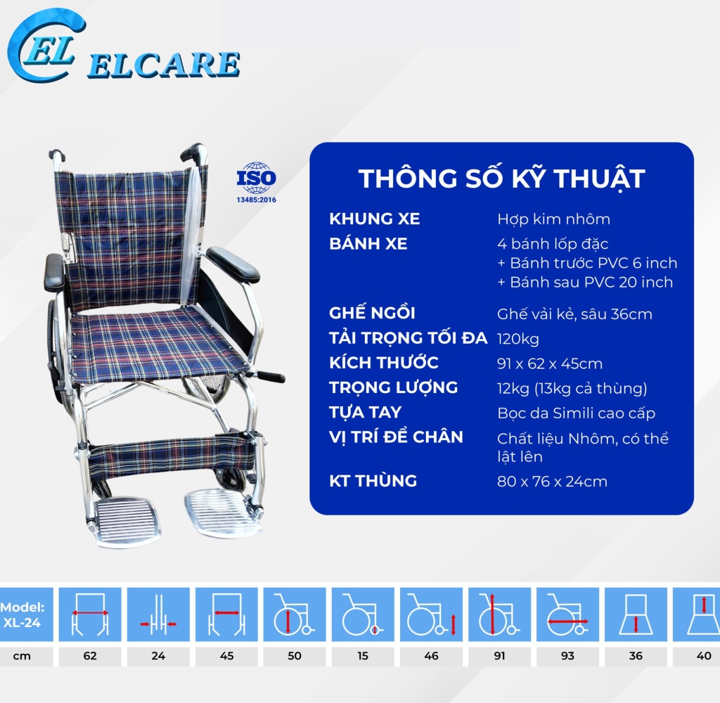 - Xe lăn XL-24 là sản phẩm xe lăn tay có phanh hỗ trợ giúp chăm sóc người khuyết tật chân, người già có thể thuận tiện trong việc đi lại.
